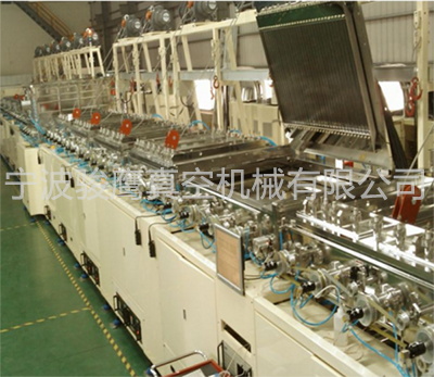 2.進料區(qū):可放置625mmχ505 mm料盤二十盤,一盤Max 35個治具,一次入料Max可達700個治具,自動送料盤結(jié)構(gòu)配置一個KY- 400高真空分子泵或10 FCryo pump及採用Rotary pump + Booster之低真空pump組合,抽氣速率可達10000 L/hr